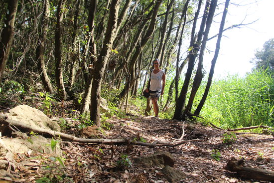 Nachmittags laufe ich in die andere Richtung. Hier kommt man nach einigen Mietbungalows und ein paar Restaurants dann über kleine Trampelpfade durch Wäldchen, immer an der Küste entlang. Überall gibt es Möglichkeiten runter an das Wasser zu kommen und überall gibt es auch Menschen, die einen kleinen Fußmarsch nicht scheuen und sich dort nieder gelassen haben.