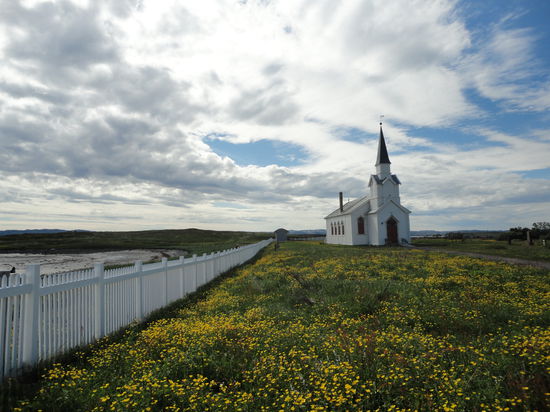 Kurz nach Verlassen von TanaBru biegen wir rechts ab zur Kirche Nesby, wo wir einen kurzen Spaziergang auf der angrenzenden Halbinsel im kleinem Naturschutzgebiet machen. Einen Bummel in Vadsö können wir uns sparen, es ist Sonntag und der Ort menschenleer, nicht mal ein offenes Kaffee finden wir. So rollen wir weiter dem Varangerfjord entlang, eine besonders schöne Fahrt da man immer einen Blick auf den Fjord hat. Nach dem Abzweiger nach Hamningberg wechseln sich grüne Hügel, schroffe Felsen, kleine Ferienhäuser die aussehen wie Hexenhüsli inmitten der Landschaft, halbkreisförmige Sandbuchten und immer schmaler werdende Strassenabschnitte ab. Am Ende der Strecke rolllen wir dann auf den Fischerort Hamningberg zu. Noch ein letzter Schwenker nach links, am alten Friedhof vorbei und vor uns breitet sich eine herrliche Meeresbucht mit weitem Wiesengelände aus. Schnell findet sich dort ein Platz für uns - bei angenehm milden 20° mit flottem Wind welcher die Mücken gut abhält.