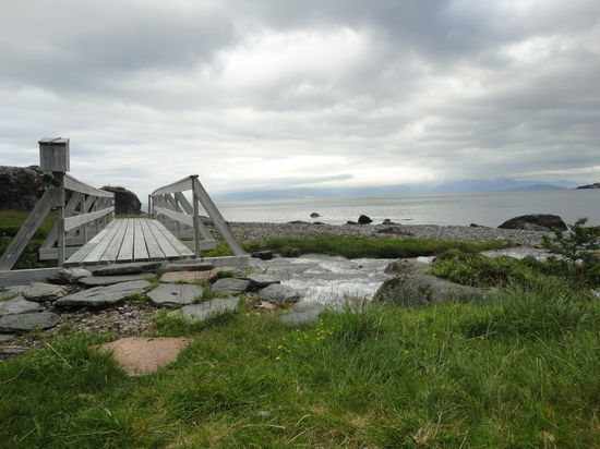 Wir rollen weiter auf der E6 bis Storslett um einzukaufen. Dort rüstet sich Markus mit einer eigenen Fischrute und entsprechendem Zubehör aus, jetzt ist er angefixt Fischen hier oben ist in den Fjorden überall erlaubt, in den Flüssen und Seen wäre jeweils eine Fiskekort notwendig. Wir verlassen die E 6 und biegen ab Richtung Skjervøy und dann weiter auf die Fähre hinüber auf Arnøya. Auch wenn uns das Wetter immer noch hartnäckig mit Nebelbänken und Nieselregen bedient finden wir einen lauschigen Stellplatz auf einem Wanderparkplatz, den wir uns aber weniger mit Wanderern als mit Schafen teilen. Abends erkunden wir die Umgebung und machen eine ca. 90-minütige wunderschöne, „norwegische“, Rundwanderung durchs Gelände. Nach einem CaféComplet aus der Bordkombüse geniessen wir eine ruhige Nacht.