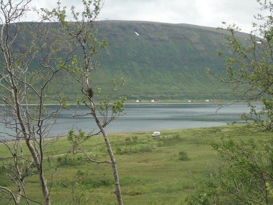 Unsere 4Reifen sind nach dem Frühstück schon wieder startklar und wir überlegen noch ob wir wirklich weiterfahren wollen da kommt „Besuch“. Maggi und Guido aus Norddeutschland hatten den gleichen Riecher wie wir und gesellen sich zu uns. Wir bleiben nun doch noch hier, trinken mit den neuen Nachbarn erstmal Kaffee. Alsbald packt Guido seine Angelruten aus und stellt auch Markus eine zur Verfügung. Die Männer am Fischen, wir Frauen am Lesen und Quatschen – so soll es sein. Doch mit der Ruhe ist es auch gleich vorbei ... die Männer ziehen schon nach wenigen Minuten Fisch um Fisch aus dem Wasser - Seelachse und Dorsche – bis es dann wirklich aufregend wird weil Guido einen grossen Heilbutt aus dem Wasser zieht und bald darauf auch Markus, wobei dieser uns zu klein scheint und wieder ins Meer zurück darf. Tiefkühlfächer werden gefüllt, Kühlschrank auch und dann wird der Grill angeworfen um den Fang auch gleich zu verkosten. Lecker, so fangfrischer Fisch!! Zum Nachtisch gab es Eis, das musste aus den Tiefkühlfächern weichen...!