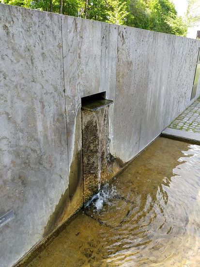 Da tritt also die Neckarquelle aus der Betonwand hervor und bildet sogleich einen kleinen Wasserfall.