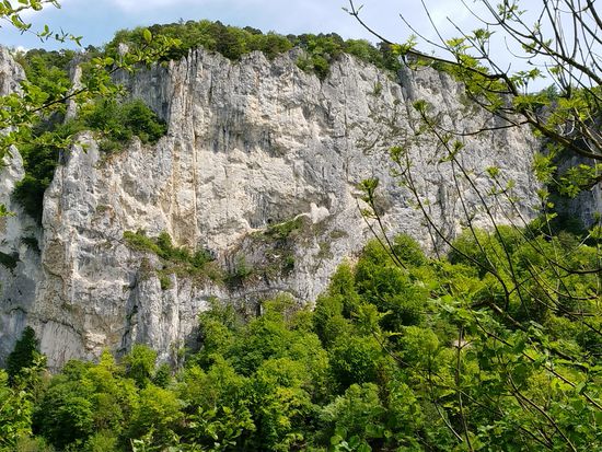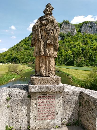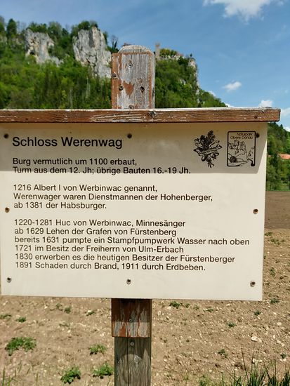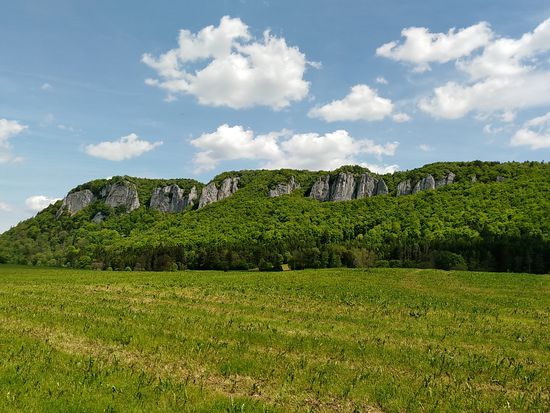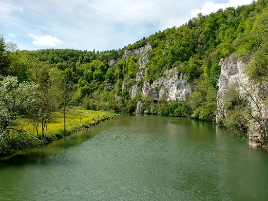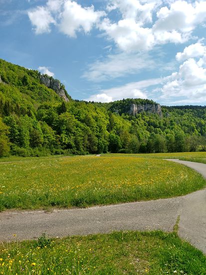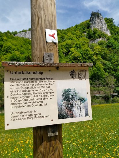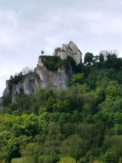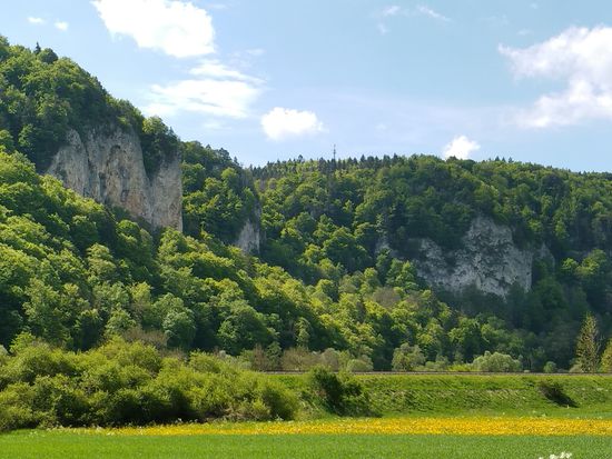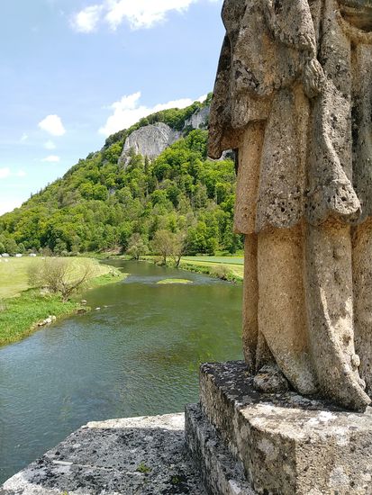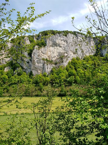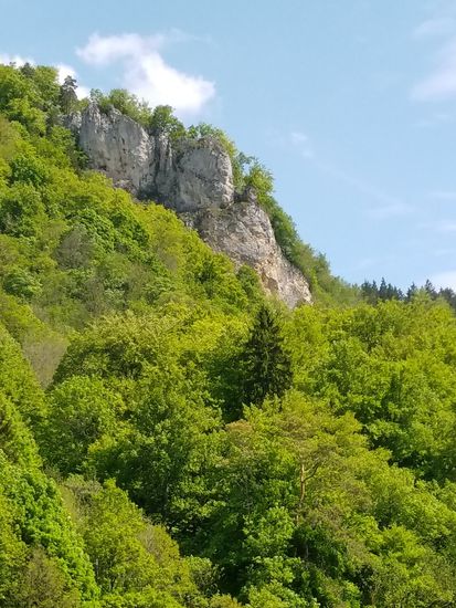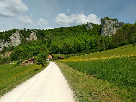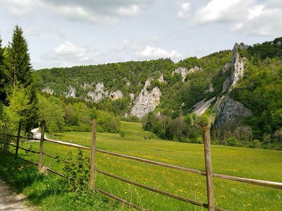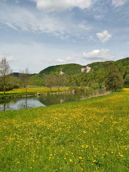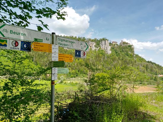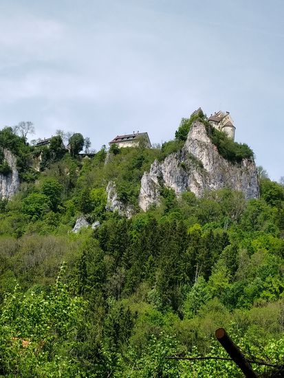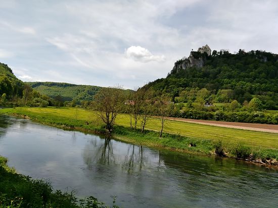Auf dem linken Felsen sitzt Schloß Werenwag aus der Zeit um 1100, das auch auf den folgenden Bildern einigemale zu sehen ist.