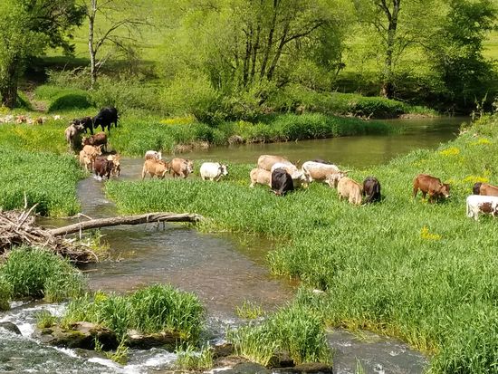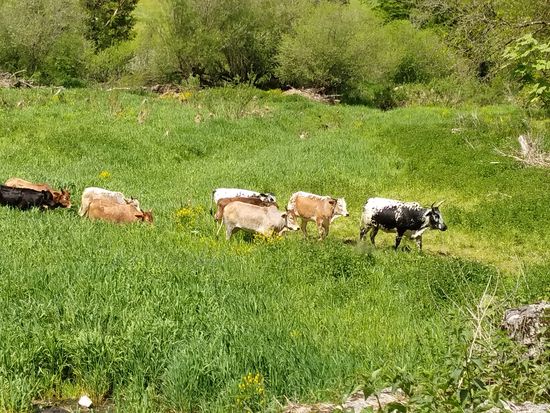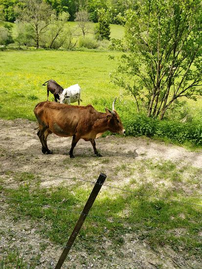 Zebus oder auch Buckelrinder stammen eigentlich aus dem Bereich des indischen Subkontinents. Hier in diesem Fall handelt es sich um eine Zwergzebu-Zucht. Der gerade anwesende Landwirt erklärte mir, daß sich seine Herde immer selbständig zwischen der Stallung und den Weideflächen hin und her bewege.