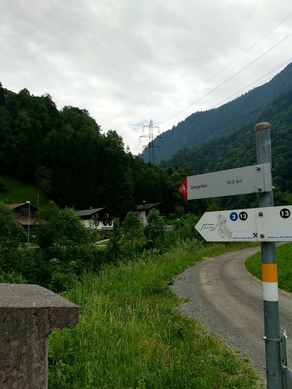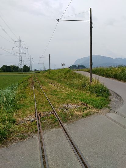 Beim Verfassen dieses Berichts und nachträglichen Recherchieren des Tourverlaufs mußte ich leider bei Google Maps und dem im Bild nach rechts weisenden Schild "Mauren FL" (Fürstentum Liechtenstein) feststellen, daß das Fürstentum Liechtenstein eigentlich nur wirklich einen Steinwurf von Feldkirch entfernt gelegen hätte. So wäre also auch ohne große Umstände im Rahmen einer kurzen Stippvisite, wie in Diepoldsau (weiter oben in dieser 2. Etappe) eine Vier-Länder-Radtour (davon drei an einem Tag) möglich gewesen.