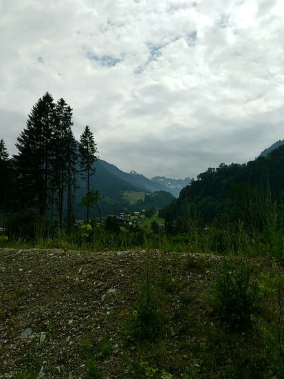 Umgebungsbild bei der Ortschaft Mauren. Sogar ein (graues) Telefonhäuschen haben die schräg gegenüber an der Straße stehen.