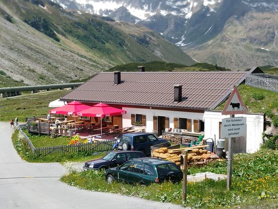 Die vorher angekündigte Alpe Vermunt. Frischere Milch, noch dazu vom Bergbauern, gibt's anschließend auf der Bielerhöhe kaum, wenn dann aus dem Tetrapak oder über diesen Lieferanten. Aber darauf wollte ich nicht vertrauen.