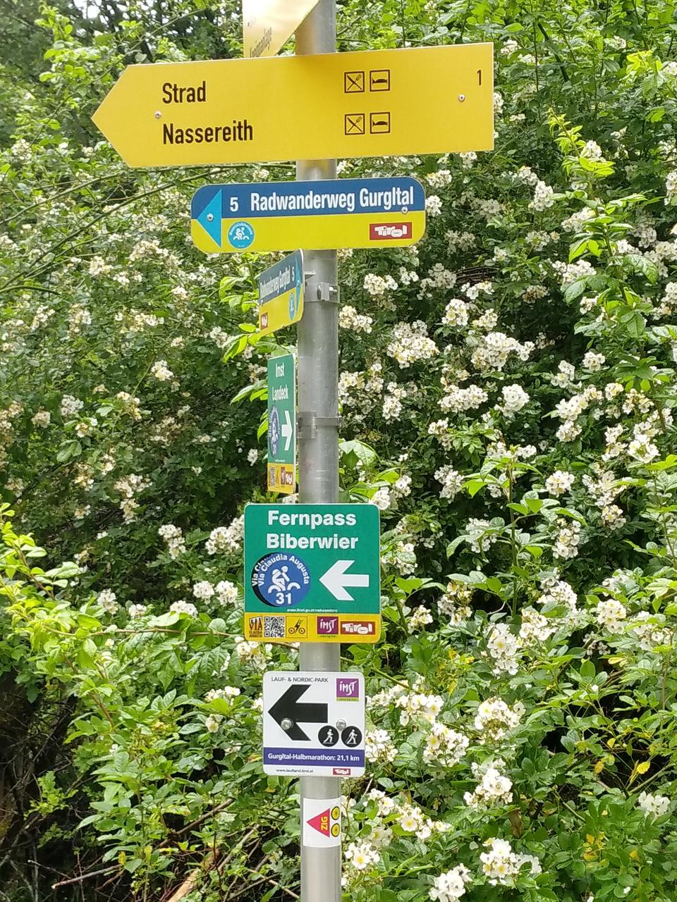 Nachdem mich der Innradweg über Schönwies und Mils die meiste Zeit zwischen Inn und der Inntal-Autobahn nach Imst geführt hatte, hieß es hier an der kleinen Innbrücke wieder Abschied vom Inn zu nehmen und in entgegengesetzte Richtung den Weg zur Ortschaft Imst einzuschlagen.