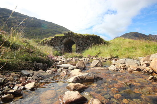 Um 7:30 Uhr beginnt unser Tag mit Blick auf den Ben Nevis. Die Nacht war wieder schön ruhig, allerdings wesentlich unbequemer, da wir diesmal kein richtiges Bett hatten. Aber für eine Nacht geht’s ja. Während der Camping Platz langsam erwacht packen wir unsere Sachen und machen uns auf den Weg Richtung Glasgow. Für unseren letzten Tag auf der Straße haben wir uns kein straffes Programm geplant. Wir fahren die schöne Strecke durchs Glen Coe und vorbei am Loch Lomond – übrigens das größte Binnengewässer in GB – und halten überall, wo es uns gefällt: am Fuß eines Berges, wo eine Schafherde grast, an einem kleinen Wasserfall, an einer alten verwitterten Brücke mitten im Moor. Die Sonne begleitet uns auch heute den ganzen Tag und wir genießen jedes Stück unseres Weges.