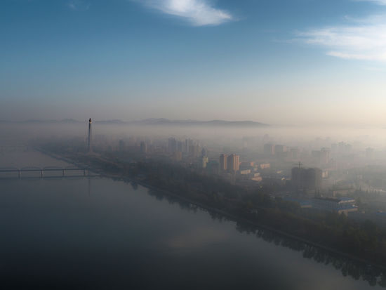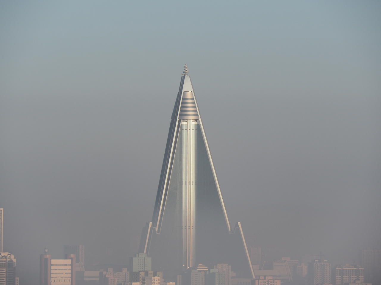 Der Morgen beginnt mit einem Blick aus dem Fenster: Pjöngjang bei Tag, genial!