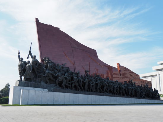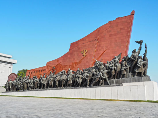Wikipedia: "Dort herum positioniert sind insgesamt 228 bis zu fünf Meter hohe Statuen. Die 119 Figuren in der rechten Gruppe sollen den historischen Freiheitskampf des koreanischen Volkes darstellen. Die 109 Figuren der linken Gruppe zeigen Personen, die herausragendes für die sozialistische Revolution und beim Aufbau Nordkoreas geleistet haben sollen, darunter auch sechs Ausländer und zehn Südkoreaner."