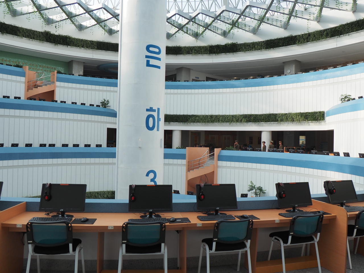 Wikipedia: "Der Palast der Wissenschaft und Technik (과학기술전당건설장) bzw. Sci-Tech Complex ist ein Forschungs- und Studienzentrum. Das Institut dient nicht nur der Forschung und der Entwicklung, sondern auch der Ausbildung. Das Äußere des Gebäudes ähnelt einem Atom. Weiterhin gibt es hier Plätze für Fernstudium, Konferenzen, Symposien und Ausstellungen. Für Kinder gibt es einen Erlebnisbereich, Traumhalle genannt, und ein Museum für die Entwicklungsgeschichte der Wissenschaft und Technik wurde eingerichtet. Die Gesamtfläche beträgt 106.600 m² und wird damit fast so groß wie die der Großen Studienhalle des Volkes ausfallen. Für den Bau wurden größtenteils Angehörige der Koreanischen Volksarmee eingesetzt. Kim Jong-un besuchte die fertiggestellten Gebäude am 28. Oktober 2015. Die offizielle Eröffnung fand am 1. Januar 2016 statt."