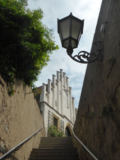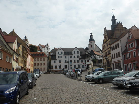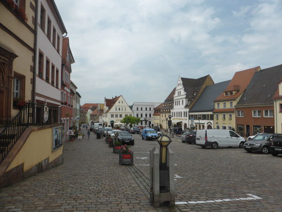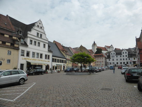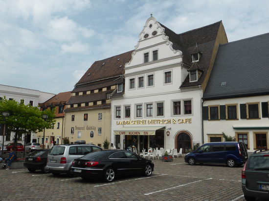 Auch an diese Besichtigung schließt sich ein kleiner Rundgang durch die Stadt an. Wir laufen hinunter zum Marktplatz, an dem Rathaus und eine große Dorfbäckerei aufwändig restauriert sind.