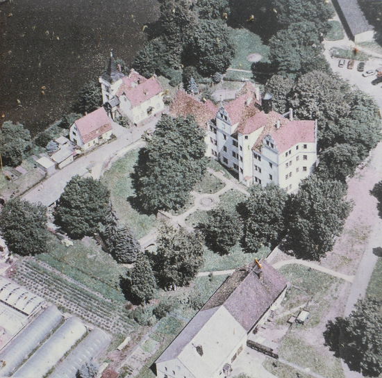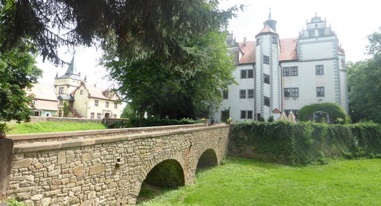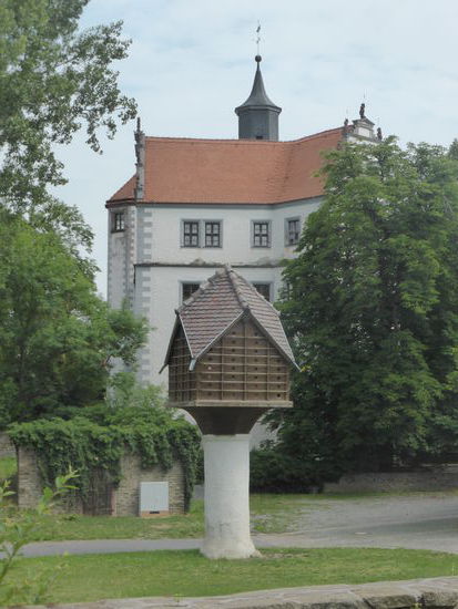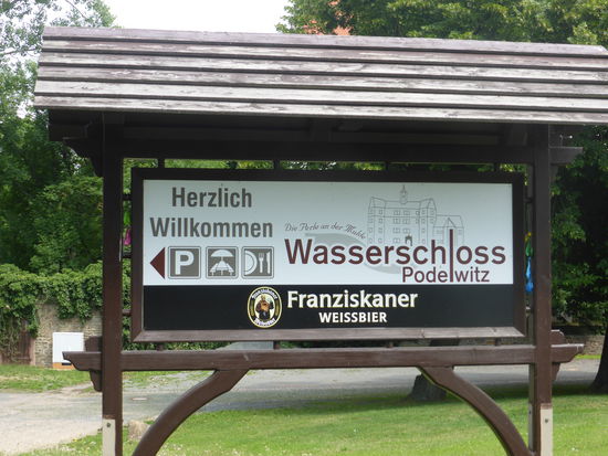 Nur wenige Kilometer weiter im Ortsteil Podelwitz ist das Schloß gleichen Namens als Wasserschloß zwar ‚trockengelegt‘, aber bietet trotzdem einen schönen Anblick mit großem Taubenhaus.