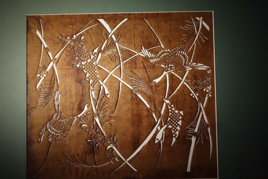 Bringt man die Begriffe Papier und Japan zusammen, denkt man vor allem an die berühmten Falttechniken - Origami genannt. Weniger geläufig sind die kunstvoll und minutiös geschnittenen Schablonen, mit denen man Stoffe einzufärben pflegte. Katagami heißen diese Färbeschablonen, die heute von Sammlern weltweit gesucht sind. Bekannt ist die Technik seit dem 7. Jahrhundert. Die in Lichtenwalde gezeigten Katagami stammen aus der Edo-Periode (1603/15 -1868) und entstanden in der Gegend um Kyoto. Nach der Öffnung Japans 1868 veränderte sich die Mode stark, so dass die Katagami an Bedeutung verloren. Grundsätzlich werden bei den Papierschnitten Schere oder Messer, manchmal auch beide Werkzeuge in Kombination verwendet. Zur Herstellung der Katagami benutzte man ausschließlich Messer. Bei komplizierten Mustern, an denen sich „freischwebende'1 Teile befinden, griff man zu einem unglaublichen Trick: Zwei dünne Papierblätter wurden überein-andergelegt und geschnitten, so dass zwei identische Muster entstanden. Zwischen beide Schichten klebte man hauchdünne Seidenfäden ein, an denen die losen Schnipsel „schweben".