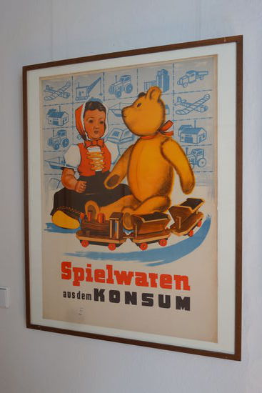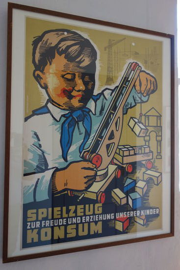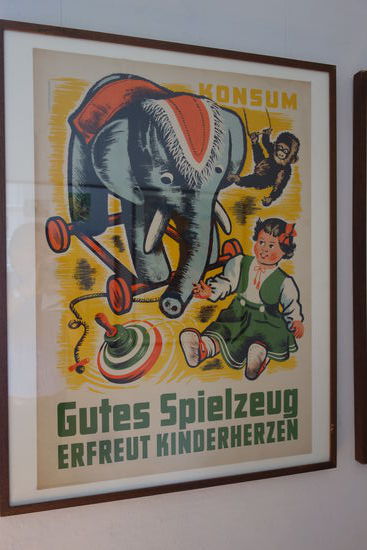 Man kaufte Spielzeug wohl zu einer bestimmten Zeit im Konsum - ein schöne Sammlung an Werbeplakaten