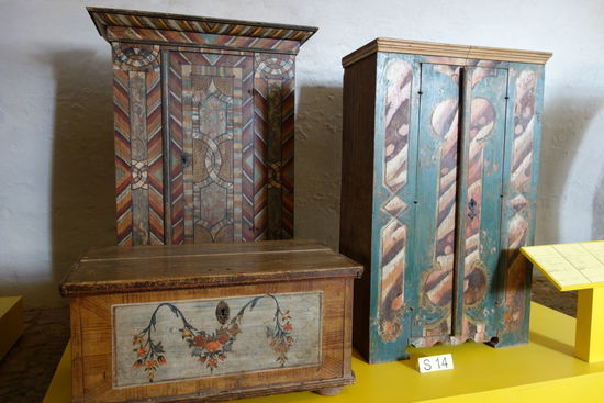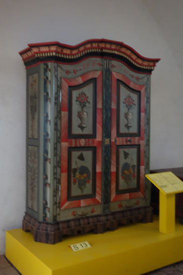 Auch diese Burg ist wieder eine Museumsburg. Kurz hinter dem Eingang ist in gesonderten Räumen des Südflügels eine Zusammenstellung von Bauernschränken aus verschiedenden Jahrhunderten zu sehen. Die Ausstellung befindet sich in dem Teil des Komplexes, der von einem Kamin über alle Etagen durchzogen wird, der zur ehemaligen Küche gehörte. Leider kann man ihn nicht sehen.