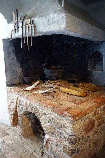 Innerhalb des Rauchfanges befanden sich Stangen und Haken. Hier konnten Fleisch und Fisch zum Räuchern eingehängt werden, wenn abends das Herdfeuer nur noch glimmte. Wohlriechende Zweige und Kräuter wurden zum Würzen des Rauches auf die Glut gelegt.