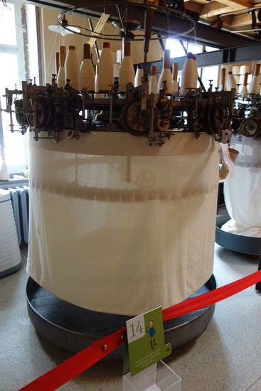 Da müssen wir natürlich hin, vielleicht kann ich einen Kontakt für unsere Rundstrick-Maschinen schaffen, denn in unserer Mannschaft ist niemand, der diese Maschinen bedienen kann. Und der Herr, von dem wir sie 'geerbt' haben ist verstorben. Auch dieses Museum ist wieder ein Höhepunkt, denn man kann die ganze Entwicklung vom ersten Wirkstuhl bis zu riesigen Rundstrickmaschinen verfolgen. Außerdem ist ein mit Kardendisteln bestückter Krempel zu sehen, den wir noch nie haben bewundern können.