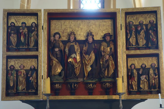Im benachbarten Herrenhaus ist dann eine neue Ausstellung über das Leben derer von Wedel eingerichtet, die ebenfalls für Kinder ideal ist, da man in einer Art Kleiderkammer solche anziehen kann und in die Schuhe von damals eintreten kann, mit denen dann ein Gang über eine Holperstrecke von Kieselsteinen zu bewältigen ist.