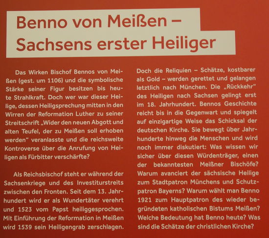 Durch die Burgstrasse die z.Zt. völlig erneuert wird, laufen wir hoch zur Albrechtsburg, wo wir neben dem eigentlichen Burggebäude auch die Sonderausstellung zu Benno dem im 16. Jh. heilig gesprochenen Bischof von Meißen mit unserem Dauerticket sehen können.