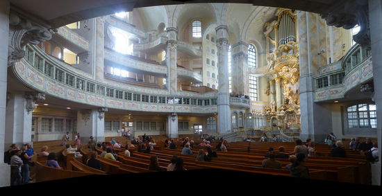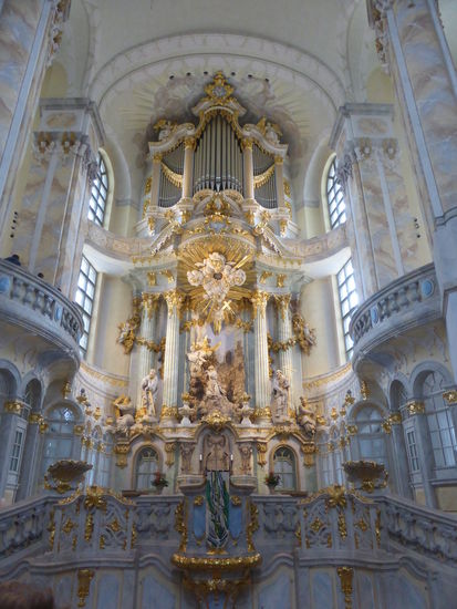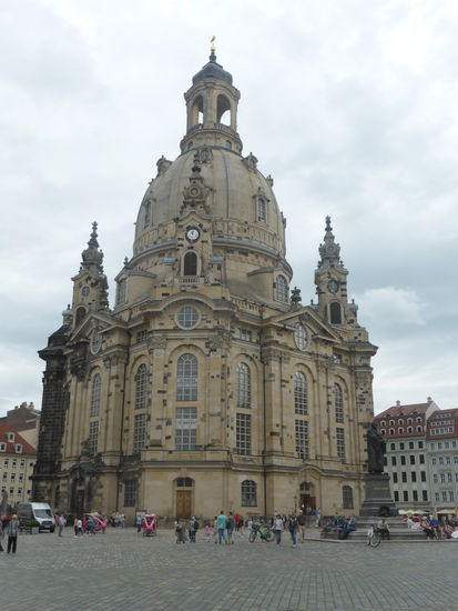 Meine Frau Ulrike nimmt den Schirm mit; das ist ein gutes Zeichen, denn in der Innenstadt von Dresden kommt zeitweise sogar die Sonne zum Vorschein. Wir können uns noch erinnern an unseren DDR-Besuch als die Frauenkirche ein eingezäunter Trümmerhaufen war. Jetzt ist sie vollständig wieder aufgebaut und innen prächtig ausgestaltet.