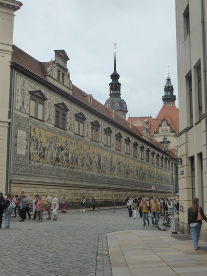 An unserem letzten Tag wollen wir dann doch noch nach Dresden. Die Wetterapp vermeldet für den Morgen bis etwa 14.00 Uhr gemischtes Wetter. Ich programmiere eine Straße auf der nördlichen Elbeseite mit kostenlosen Parkplätzen , die aber alle besetzt sind. Per Zufall finden wir dann auf der richtigen Seite am Terrassenufer Bezahlplätze für 3€ Tagestarif 10 min Fußweg bis zur Frauenkirche.