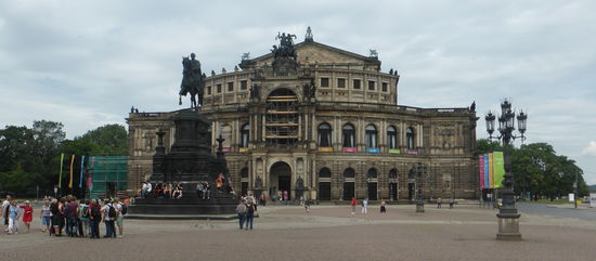 Die Brücke an der Semper-Oper ist wegen Bauarbeiten vollständig abgesperrt und der ganze Platz ist eine Baustelle.