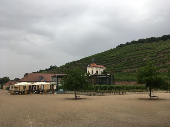 Wir laufen an der Dresdner Festung vorbei zum Auto zurück und wählen für die Rückfahrt den Weg über Radebeul, wo am Schloß Wackerbarth ein Weingut sein soll. Bereits auf der Fahrt dorthin fängt es an zu regnen – damit steht fest, dass wir an allen Tagen unsere Programm haben abwickeln können ohne Regen.