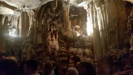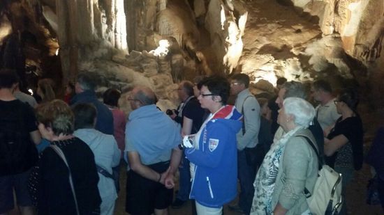 Die Höhle, die nicht so weit von uns entfernt war, war diese. Vorher sind wir in Carcasonne rumgelatscht, Hilfe, wo haben wir das Auto geparkt??? Da heute 29 Grad waren, kam uns anschließend die Höhle gelegen. Man, sind wir dahin durch die Pampa. War richtig abenteuerlich. Oben auf einem Berg war sie. Auf dem Parkplatz ein Auto aus Andorra - cool. Eintritt 10€ pro Person. Souveniers gab's auch, vor allem Mineralien. Die Führung war französisch, man gab uns aber ein laminiertes A4-Blatt auf deutsch.