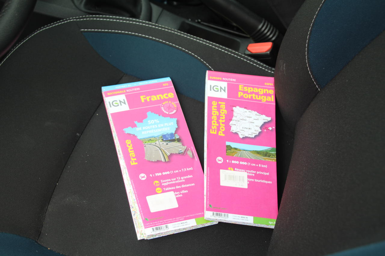Irgendwann sehe ich den ersten Huper U (Supermarkt). Sofort lege ich einen Stopp ein. Wie lustig: vor ca. 20 Jahren habe ich auf Korsika das letzte Mal so einen Laden betreten und hatte nun den Eindruck, es sei gestern gewesen. Zielsicher habe ich Landkarten, Geschirrhandtücher und Wasser gefunden. Die Karten vom ADAC haben ja nur Autobahn und die größten Straßen. Jetzt habe ich mir eine Gesamt-Frankreich 1:750.000 zugelegt - das beruhigt ungemein, wenn ich zwischendrin mal anhalten kann und nachsehen, wo ich überhaupt bin - so ganz ohne Internet. Und weil die Motivation und Idee Spanien so wie ein Floh im Ohr hockt, nehme ich gleich noch eine Spanien-/Portugalkarte im ähnlichen Maßstab mit... ich traue mich allerding nicht, sie aufzufalten: die ist so dick, dass ich bestimmt mein Dachzelt damit auslegen kann.