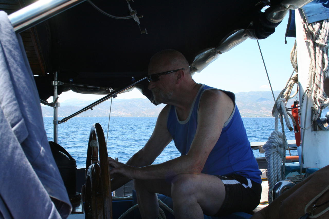 Am nächsten Morgen macht sich die Eligius auf den Weg nach Poros, und wir verlegen näher ans Ufer. Jedoch sind Gewitter angesagt, und der dadurch drehende Wind würde uns in der Bucht festsetzen. Also gehen wir Anker auf und motoren, da es bisher windstill ist, in eine Bucht in der Nähe von Porto Heli. Sie wird Nonnenbucht genannt, warum, weiss aber niemand. Jedenfalls gibt es dort kein Kloster, und ich konnte am Ufer auch keine Pinguine entdecken.