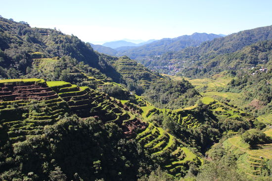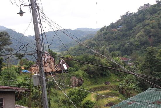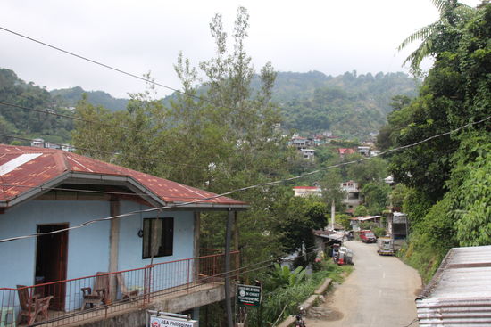 Beide sind auf den ersten Eindruck sehr nett. Sie fragen, ob es möglich wäre, dass wir im nächsten größeren Ort noch zum Einkaufen halten. Durch die zeitliche Verschiebung sind sie natürlich nicht mehr dazu gekommen. Das ist mir ganz recht, dann kann ich auch noch ein bisschen einkaufen. Mir schwant da so etwas, was die nächsten Tage angeht. Im Robinson Plaza gibt es auch diverse Fastfood Ketten wie immer auf den Philippinen. In einer gönne ich mir noch eine Nudel Wan Tan Suppe, dann geht es los. Wir sind gute drei Stunden unterwegs, bis wir in Banaue ankommen. Hatte ich gedacht, dass das hier ein größerer Ort ist, so habe ich mich getäuscht. Zwar ist er der Zentrale Marktplatz, aber tatsächlich mehr oder weniger eine Straße, die sich über Kilometer auf Bergrücken hin zieht. Zu Fuß macht man hier nicht wirklich viel. Nach der Beschreibung von Jappans Homepage bin ich davon ausgegangen, dass ich in einem guten Hotel wohne. Da habe ich wohl etwas mein Wunschdenken hinein interpretiert. Ich wohne bei Ihnen privat in ihrem Bed & Breakfast. Das ist zwar sauber und ordentlich und zum Glück mit einem großen Bett, aber sonst extrem einfach. Bett Stuhl, Nachttisch, drei Kleiderhaken. Ich kann also nicht einmal meine Sachen für die drei Tage auspacken.