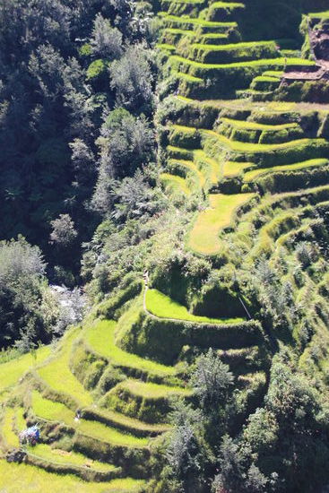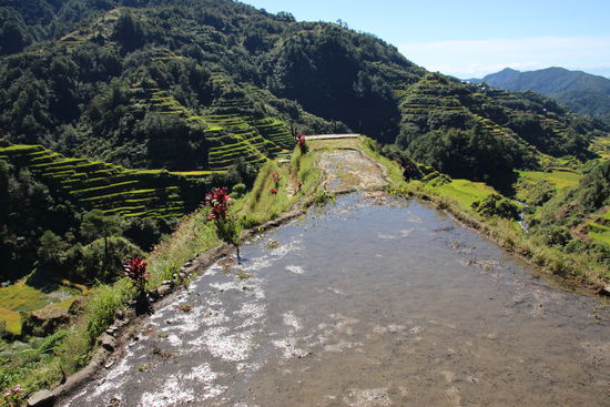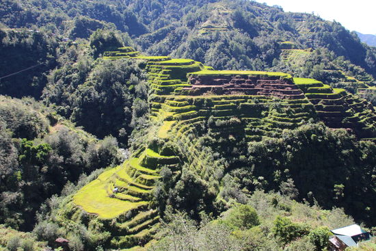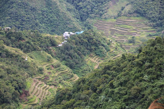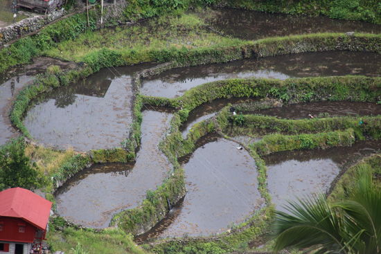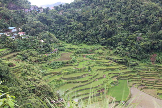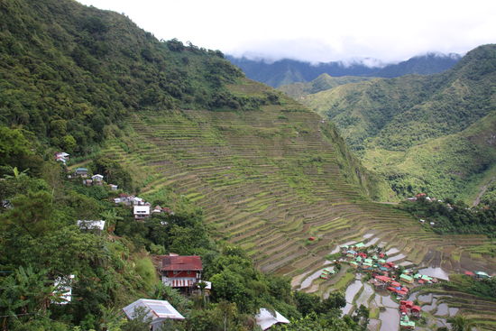 Nachdem es gestern schon bewölkt und regnerisch war, hat es heute den ganzen Tag mehr oder weniger geregnet. Auf seine Frage hin habe ich gemeint, dass ich gerne ausschlafen möchte. Also nix mit 07:00 wecken und 08:00 los fahren. Ich schlafe bis 09:00, dann gibt es Frühstück, Toast mit Schinken und Spiegeleier und Kaffee. Dann geht es los. Wir sind nach Batad zu den interessantesten der Reisterrassen gefahren. Zum Glück war es wenigstens in der Zeit trocken während ich mit einem Guide, der uns heute begleitet, zum Aussichtspunkt herunter laufe. Herunter bedeutet natürlich anschließend wieder rund eine halbe Stunde extrem steil nach oben. Die Anstrengungen lassen in diesem Urlaub nicht nach. Die Aussicht ist aber trotz dem leider fehlenden Sonnenschein beeindruckend.