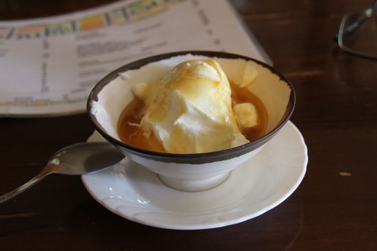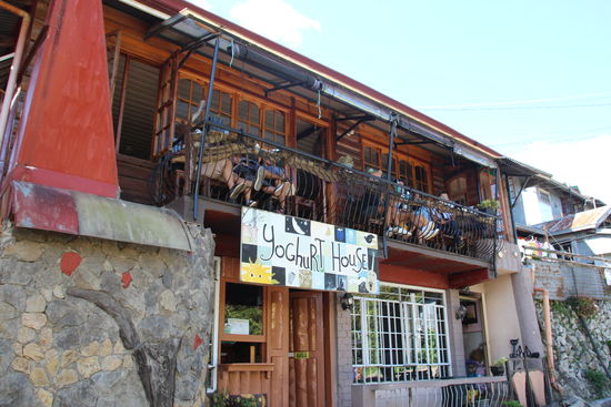 Inzwischen ist es schon 13:30 und fast schon zu spät zum Mittagessen. Jappan setzt mich aber an einem netten Lokal ab, dass sich Joghurt House nennt. Das passt doch. Ein schöner Joghurt mit frischen Früchten, wie er auf der Karte steht, das wäre jetzt genau das richtige. Kostet zwar mit 160 P fast so viel wie ein normales Essen, aber das ist mir egal. Ich bestelle ihn, aber ohne Bananen. Es dauert eine Weile, dann kommt der Junge wieder und druckst herum, „sie haben nur zwei Sorten Obst da, und eine davon ist Banane.“ Dann also nicht. Mangolassie und Erdbeerlassie gibt es genauso wenig. Dann nehme ich nur einen Joghurt mit Sagata Honig. Der Joghurt ist sehr dick und cremig, dazu relativ sauer, aber mit dem Honig ganz lecker. Das bringt mich auf die Idee, dass ich noch gar keinen Honig für meinen Vater gekauft habe. Unterwegs frage ich in einem Laden und sie habe auch prompt welchen. Frau Bustamante meint, ob das auch echter Honig sei, nickt dann aber.