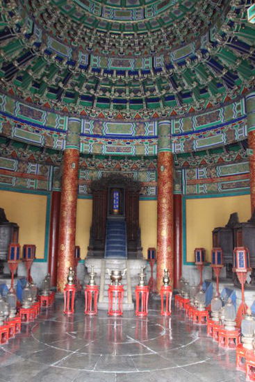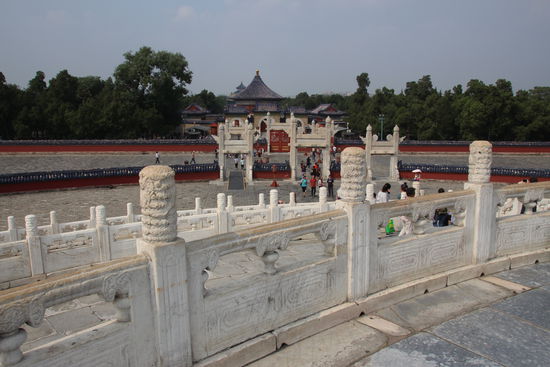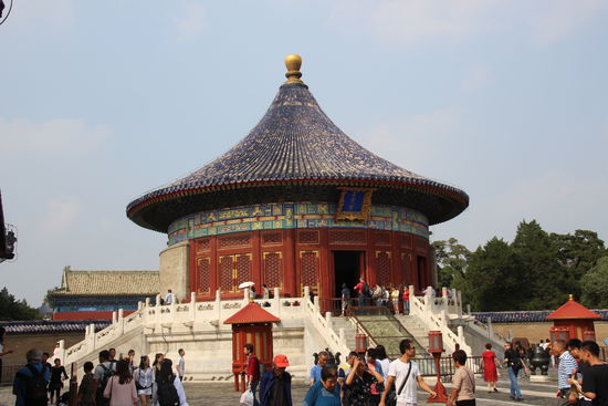 Ich beschließe, ins Hotel zurück zu fahren. Auf dem letzten Teilstück aber fahre ich dann doch quasi am Hotel vorbei und noch eine Haltestelle, um zu der kleinen Mall zu kommen, die vorgestern schon zu hatte. Siehe da, hier bin ich nach kurzer Zeit fündig geworden. So komme ich noch rechtzeitig im Hotel an, um die schon versammelte Gruppe in der Lobby zu treffen. Gleich geht es los zu unserer ersten Besichtigung des Himmelstempels. Er gilt als das Wahrzeichen Pekings und für die Chinesen als schönstes Gebäude der Welt. In der Tat finde ich den Tempel auch sehr schön. Wir benötigen etwa zwei Stunden zur Besichtigung, danach geht es bereits zum Abendessen.