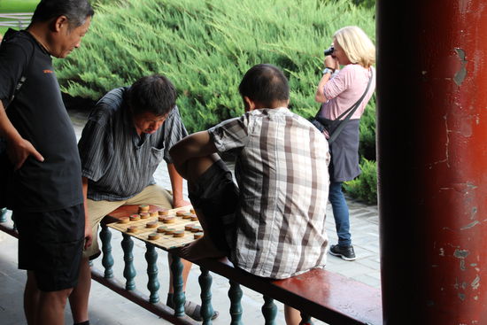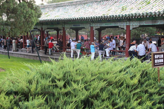 Der Park, der zu dem Tempelgelände gehört ist für Chinesen, die älter sind als 60, frei zugänglich. Der lange Wandelgang, der durch diesen Park führt, ist beliebter Treffpunkt zum Karten oder chinesisches Schach spielen.