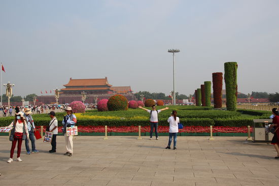 Es hat dann auch gut so gepasst und wir sind pünktlich los zum Tian’anmen Platz, dem größten Platz der Welt. Heute ist Sonntag, und auch noch Feiertag in China. Dazu hat Montags der Palast auch noch zu, so dass es bereits sehr lebhaft auf dem Platz zugeht.