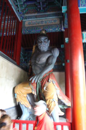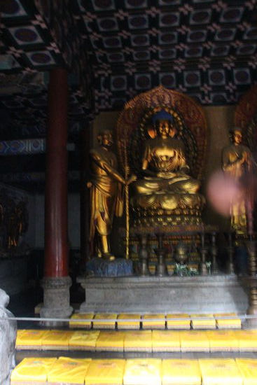 Hier steigen wir um in einen Bus, der uns zum Shaolin Kloster bringt. Unterwegs fängt es an zu regnen. Bevor wir zur Besichtigung gehen, halten wir noch an einem Nonnenkloster um hier zu Abend zu essen. Zur „Begeisterung“ einiger der Gruppe gibt es Vegetarisch. Unter anderem solcher Leckereien wie Tofunudeln, Bohnen mit „Wurstscheiben“ aus Tofu, Pilz und Tofusuppe (geschmacksneutral), Suppe mit Pilzen und Datteln (ganz leicht süß) und anderes. Lecker waren die frittierten leicht süßen Kartoffelbällchen. Was etwas aus dem Rahmen fällt ist der Aal. Einer meint, das sei niemals Aal sondern Regenwurm. Zubereitet ist er ähnlich wie das sonst übliche Schweinefleisch süß, frittiert oder gebraten in Honig. Ich finde den sogar ganz lecker, aber da bin ich alleine am Tisch. Am anderen Tisch kommt er besser an.