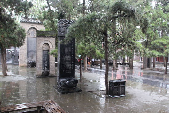 Dann geht es weiter zum Shaolin Tempel. Leider hört es nicht auf zu regnen. Der Tempel selbst ist etwa einen Kilometer Fußweg vom Touristenparkplatz entfernt. Es fahren zwar Elektrofahrzeuge als Shuttle hin, wir laufen aber. Der Tempel ist sehr schön und liegt idyllisch an einem bewaldeten Berghang. Bei schönem Wetter wären die Bilder sicher noch besser geworden, aber selbst bei dem Schmuddel Wetter haben sie etwas.