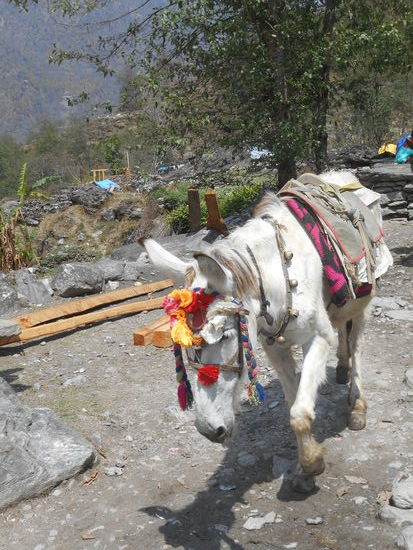 Unsere nepalesischen Begleiter haben sich gestern Abend noch mit ihren Freunden getroffen und sind heute erst früh ins Bett gekommen. So starten wir heute ein bisschen langsamer. Unterwegs überholen wir die andere Gruppe. Dave, ein 63 jähriger Australier, macht mit seine Schwager aus Taiwan einen ähnlichen Trekk. Allerdings sind die beiden nur mit einem kleinen Tagesrucksack unterwegs. Den Rest trägt ihr Träger.