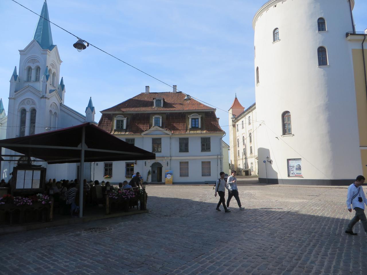 Heute Morgen verabschieden wir uns und fahren dann nach Kaunas. Unterwegs ist alles schön grün und die Getreidefelder werden abgeerntet. An einer Raststätte machen fürs Mittagessen halt. Das Anwesen ist schön gepflegt und weitläufig. Wir setzen uns auf die Terrasse essen dort.