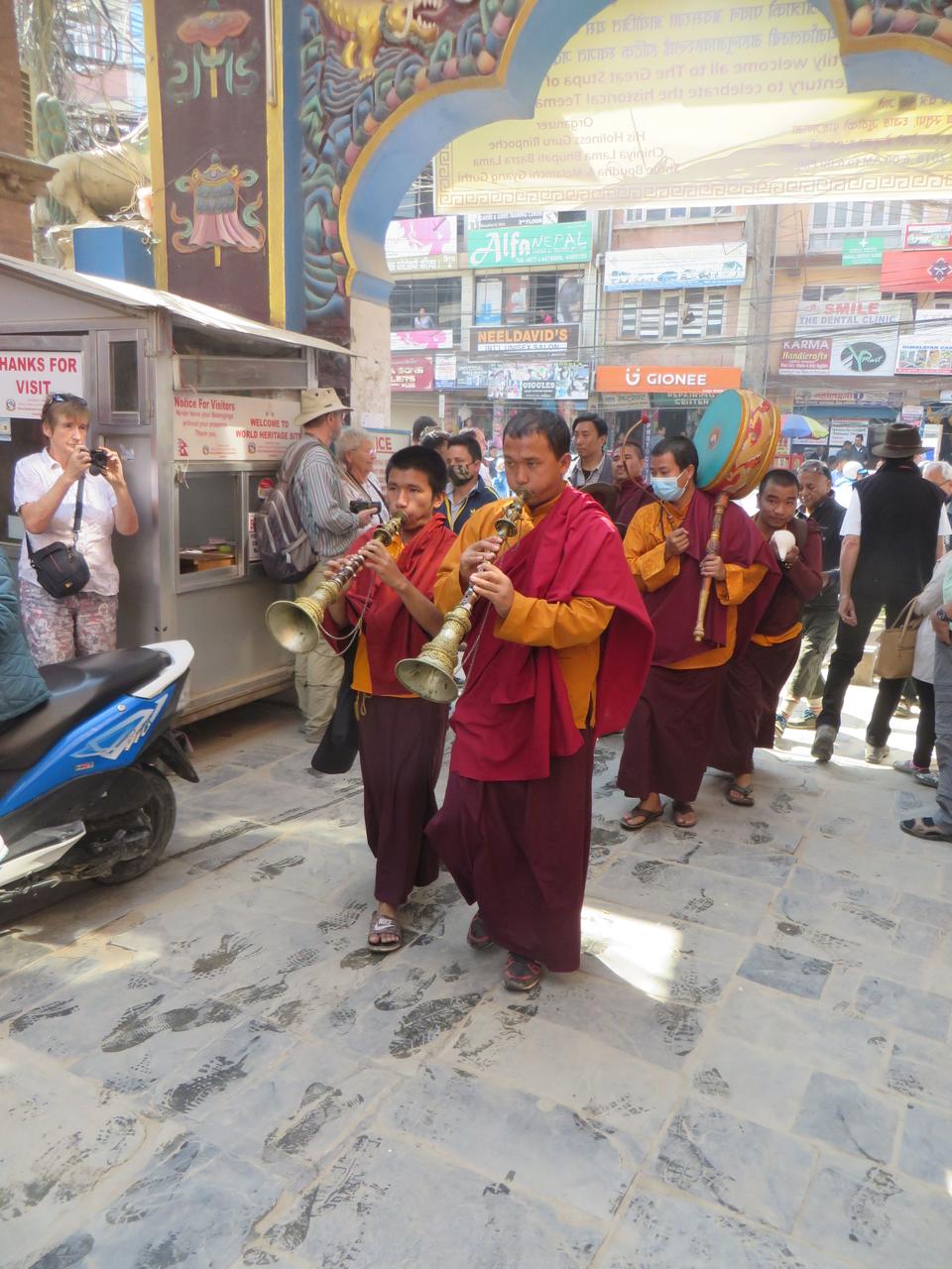 Dann kam ein Leichenzug, der Tote saß in einer Sänfte und wurde um die Stupa herumgetragen, Familie und Freunde begleiteten ihn.