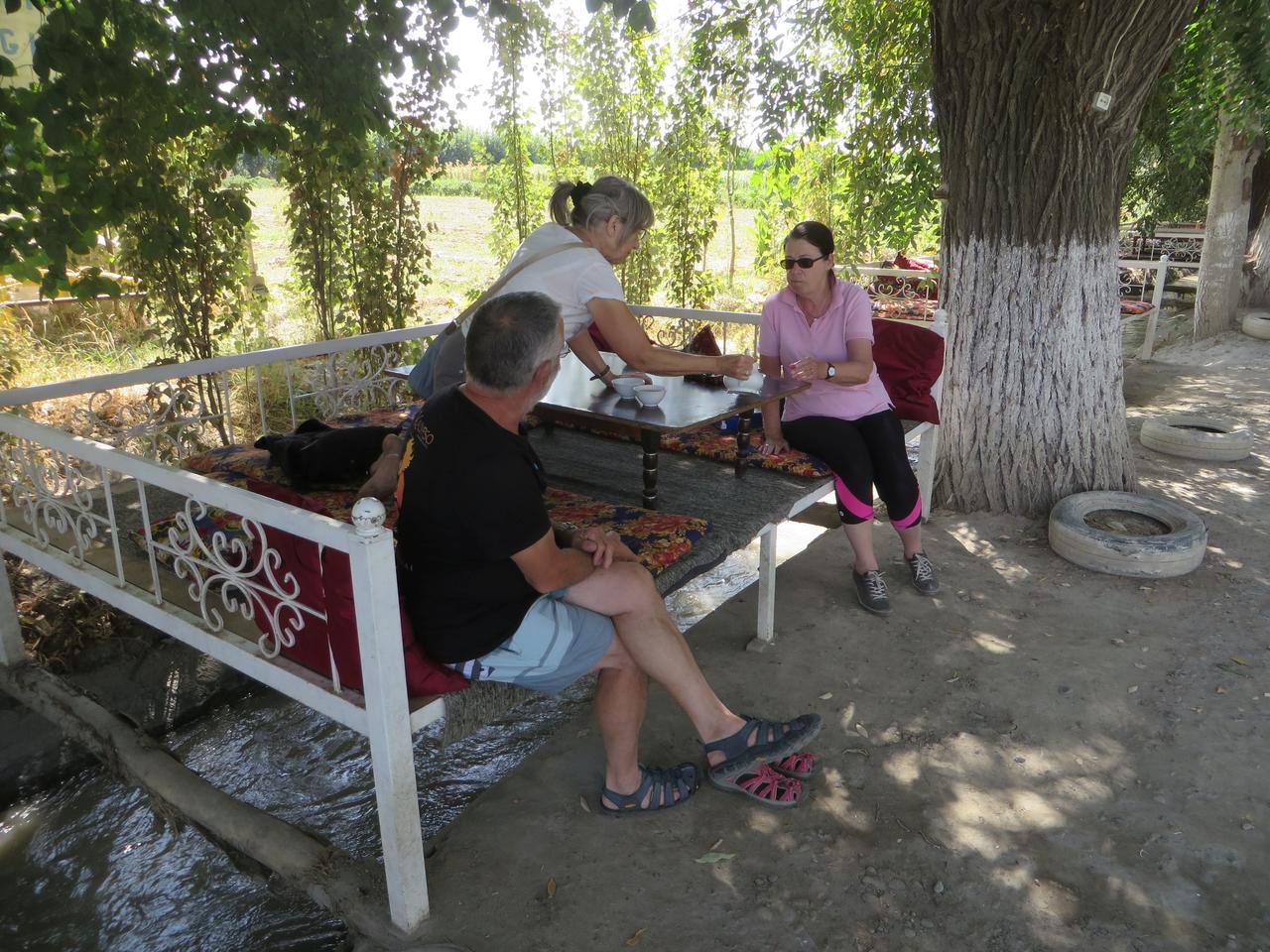 Dann gingen wir gemeinsam zum Mittagessen über den Dächern von Buchara, wir haben dort sehr schön luftig gesessen.