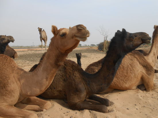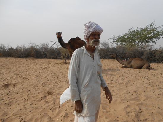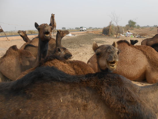 Ab in die Wüste nach Khuri, auf dem Weg nach Khuri fanden wir einen Kamel Farmer. Einzigartige Fotos, wieder einmal authentisch Indien. Zu sehen gab es diesmal nicht Kamele aus der weiten Ferne, sondern ganz nah zum Anfassen. Ein Baby Kamel war auch dabei. Schöne Tiere. Der Farmer zeigte uns gerne seine Kamel-Herde. Später interessierte mich wieviel ein Kamel kostet und es wurde mit ungefähr 300 Euro angegeben.