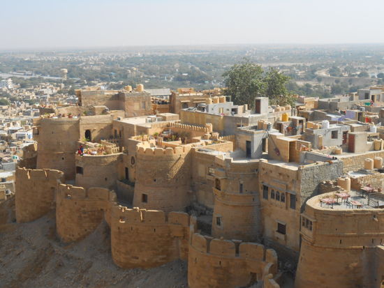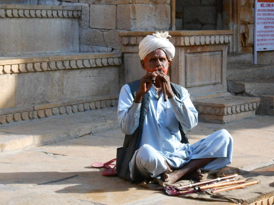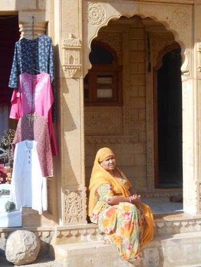 Die stillen Helden dieser Stadt sind die vielen Steinmetze und Kunsthandwerker. Es ist atemberaubend, die Bauweise des Forts alleine ist sehr interessant, es wurde kein Zement verwendet. In der Wüste regnet es nicht. Die Steine wurden deshalb wie in einem Baukastensystem aufeinander gesteckt und sind so zu einem gewaltigen Fort zusammen gefügt worden. Das Ambiente ist erstaunlich. Überall sind kunstvolle Erker zu sehen. Die Erbauer Jaisalmers waren auf Künstler.