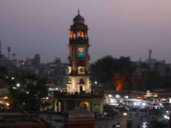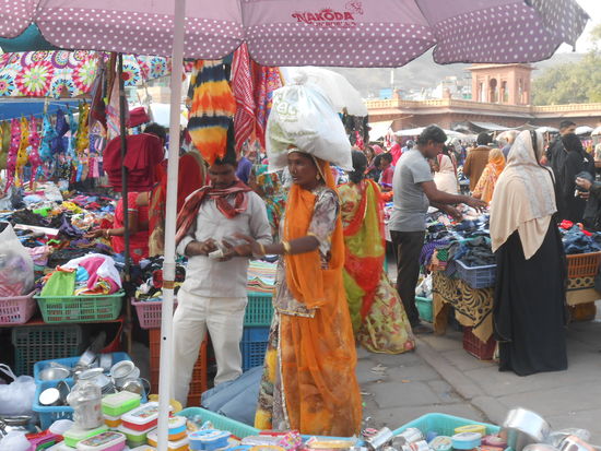 Der Sadar Markt Jodhpurs rund um den von den Engländern erbauten Uhrenturm ist ein Abenteuer a la Indien. Die schönen Eindrücke zuerst, es ist total irre. Neben den Händlern, die verbissen um jeden Kunden feilschen, laufen die heiligen Kühe. Ein irre Durcheinander. Man kann Eindrücke tanken, es ist unglaublich.