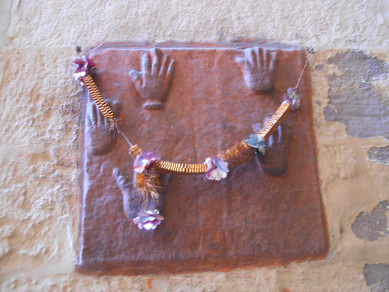 Abdrücke der Maharadscha Witwen, die in einer aufwendigen Zeremonie mit Gebetsperlen in der Hand auf den Scheiterhaufen ihrer verstorbenen Ehemänner stiegen, um die Ehe im Himmel fortzusetzen und damit zu Satis wurden.