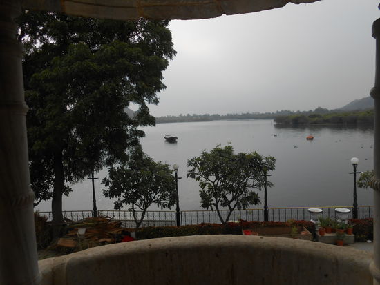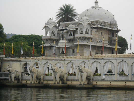 Die Anfahrt war noch ganz schön, obwohl Schwimmwesten nun mal übertrieben sind. Leider besteht Jagmandir nicht mehr aus dem romantischen Mahardscha Lustschloss sondern aus einem überteuerten Restaurant, einem Garten leider nur mit Hecken, nur einem verspielten Maharadscha Türmchen und das war es leider.