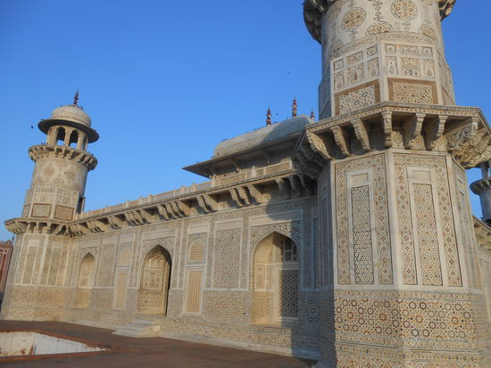 Nur Jahan, Hauptfrau des Mogulherrschers Jahangir, liess für ihren Vater Mirza Ghiyas Beg das Mauloeum errichten. Überaus kunstvolle Intarsien, keine Frage. Es ist wieder ein Marmor-Traum. Das ist ja eigentlich nichts neues in Indien. Jetzt liebt man Indien noch mehr, es gibt überall,solche schönen Bauwerke und man kann so herrlich in die Vergangenheit reisen.