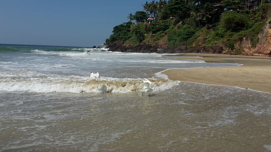 Sauber und elegant ist Varkala. Viele schöne Resorts, an den Klippen kann man schön bummeln. Die üblichen Touristen Geschäfte. Deshalb war es ganz gut in Rajasthan schön eingekauft zu haben. Hier kann man nette Inder treffen, noch das eine oder andere einkaufen und in der Sonne relaxen. Süß sind auch die vielen Cafés auf der Klippen Promenade. Im Dorf ist ein Super Markt -Krishna Supermarkt, hier kann man alles mögliche an Gewürzen etc einkaufen. Es gibt auch einen kleinen Buchhandel, hier kann man gelesene Bücher in andere eintauschen.